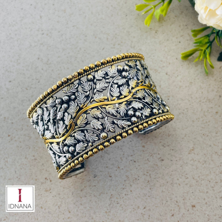 BROADER DUAL TONE FLORAL WHITE KUNDAN HANDCUFF (1.5 INCHES WIDE)