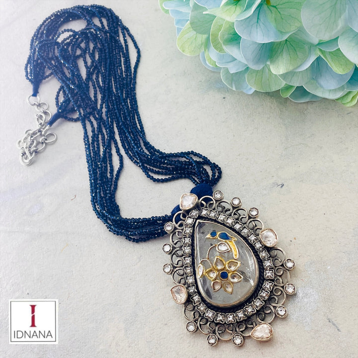 DUAL TONE LAPIS LAZULI BEADED CRYSTAL INLAY KUNDAN MOISSANITE KUNDAN LONG NECKLACE