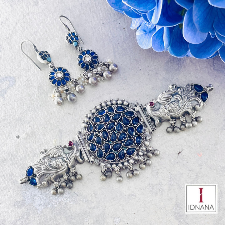 BLUE KEMP NAKASH PEACOCK CHOKER SET