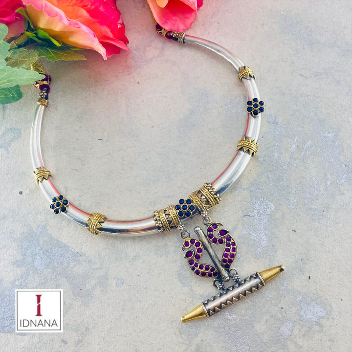 BLUE AND RED KEMP PEACOCK MOTIF DUAL TONE HASLI